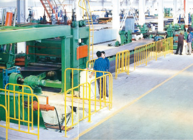 該生產(chǎn)線為中厚板開卷校平生產(chǎn)線的升級(jí)機(jī)型。為了適應(yīng)鋼廠不斷推出的厚度更大、板幅更寬的鋼卷開平需要本公司特別設(shè)計(jì)、制造出該系列產(chǎn)品。由上料小車、開卷機(jī)、引頭裝置、夾送及粗校、過渡臺(tái)、對(duì)中裝置、主校平機(jī)、測(cè)長(zhǎng)裝置、尾料夾送、剪板機(jī)、輸送出料、落料整料裝置、電控系統(tǒng)與液壓氣動(dòng)系統(tǒng)等組成。